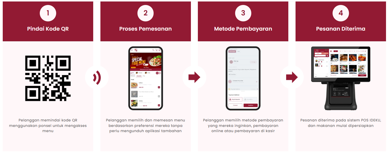 Berikut adalah bagaimana IDEKU QR bekerja di sebuah restoran