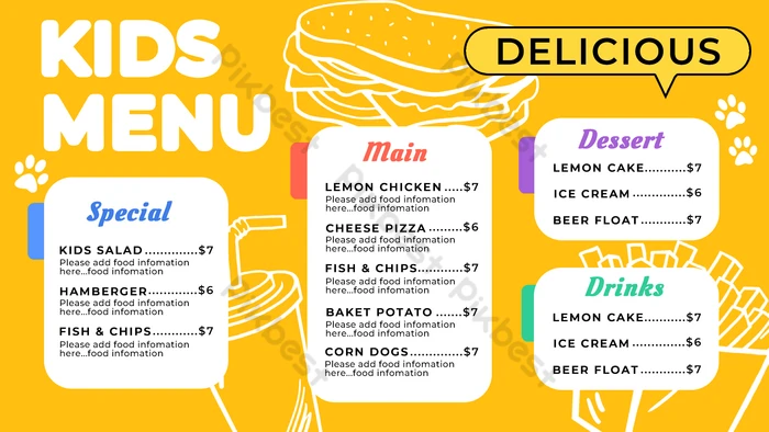 Menu restoran menjadi saya tarik utama ketika pelanggan datang ke sebuah restoran. Untuk meningkatkan perhatian pelanggan, buatlah menu dengan desain visual dan copywriting yang menarik.